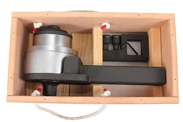 Деревянный ящик с отсеками защищает инструмент от механических воздействий, а также облегчает его транспортировку.