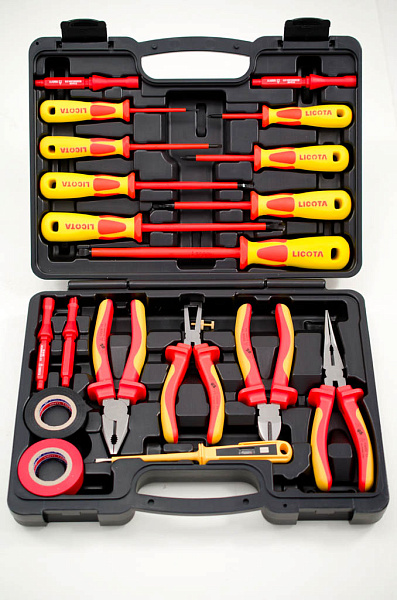 Набор диэлектрических инструментов Licota ASD-CVS105K из 19 предметов для электромонтажных работ в электросетях до 1000 V.
