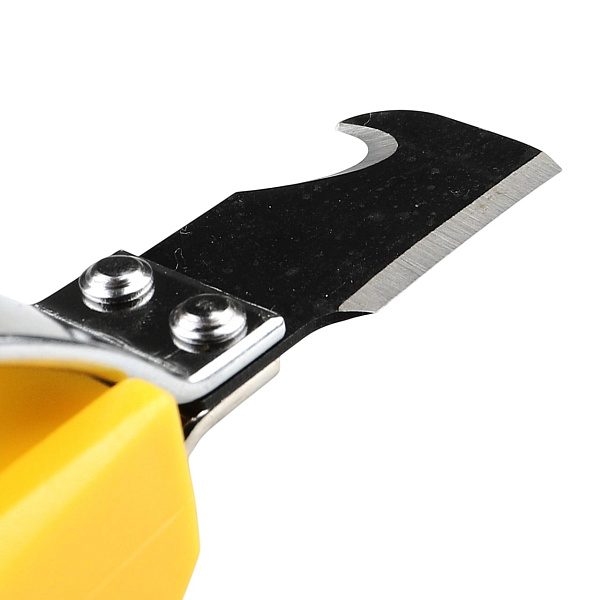 Нож оборудован дополнительным ножом с двумя лезвиями: прямым и крючкообразным.