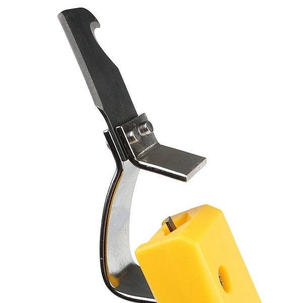 Снятие изоляции происходит путем прижатия провода скобой к ножу, которым необходимо осуществлять круговые движения, разрезая изоляцию.