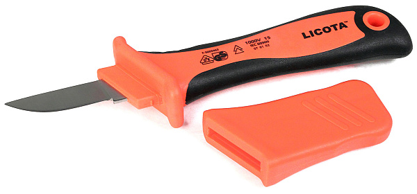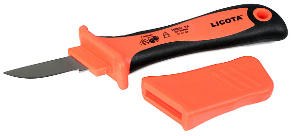 Нож электрика Licota AKD-V002 с прямым лезвием предназначен для удаления изоляции с кабелей и проводов.
