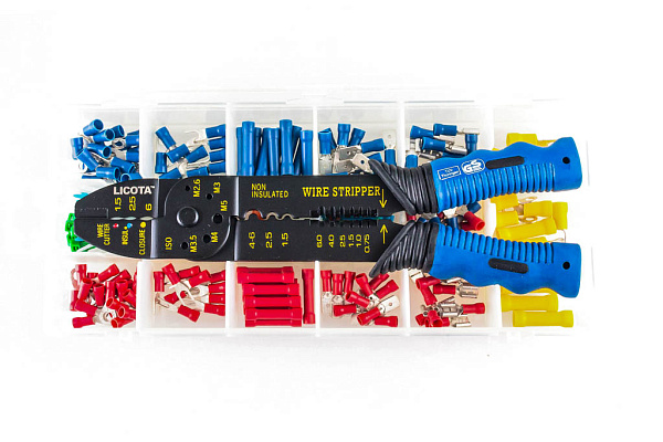 В наборе содержится 14 разновидностей клемм и наконечников, а также комплект пластиковых хомутов, что избавляет от покупки элементов по отдельности и дает возможность работы с разными видами электрооборудования.