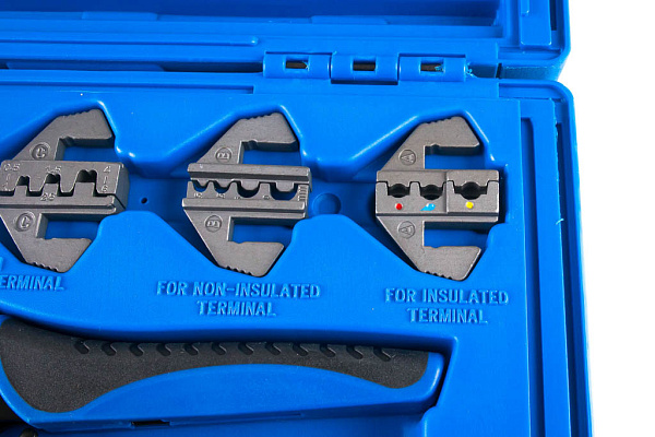 Инструмент подходит для обжима клемм различных профилей, благодаря возможности менять губки.
