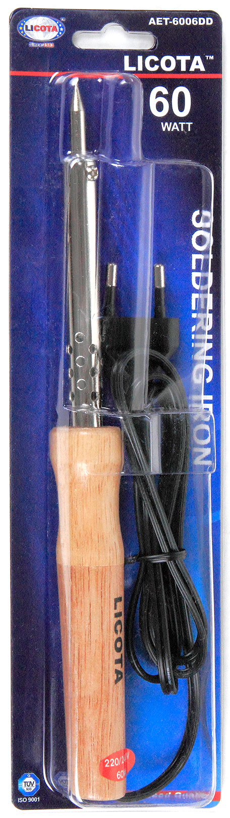 Паяльник с деревянной ручкой Licota AET-6006DD подходит как для профессионального, так и для домашнего использования. Используется для пайки и лужения при монтаже элементов радиоэлектронной аппаратуры и тонкостенных металлических изделий.