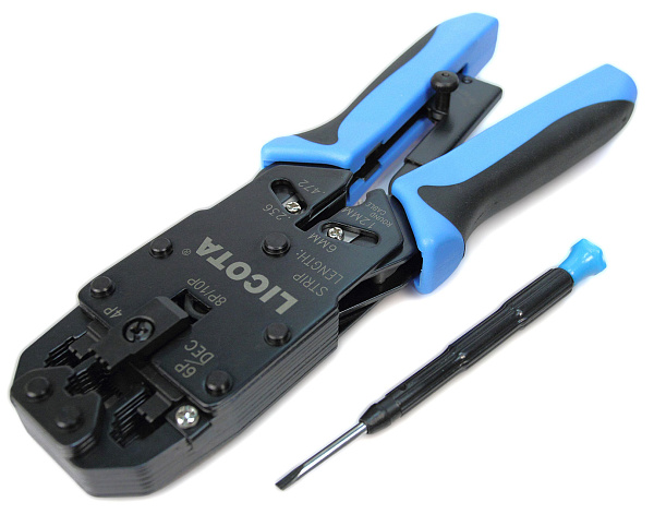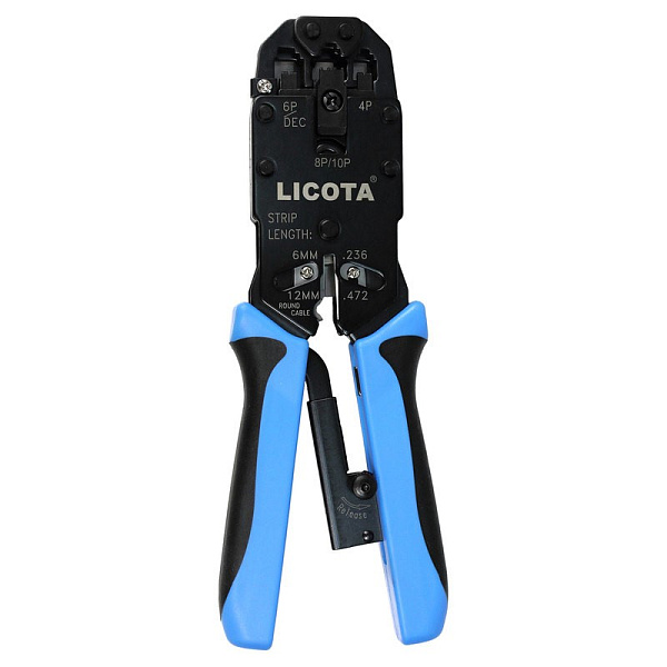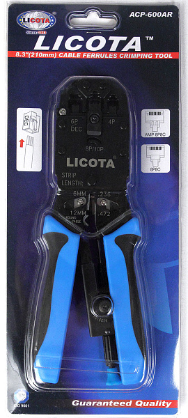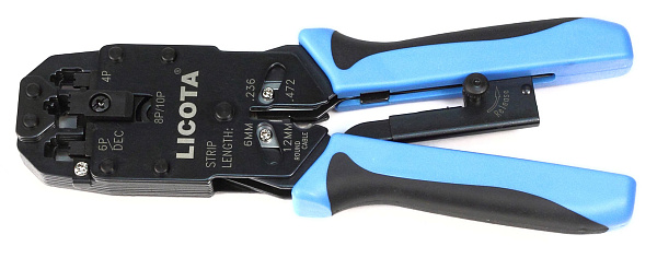 Инструмент для обжима коннекторов RJ-45, RJ-11/12 и зачистки витой пары Licota ACP-600AR позволяет: