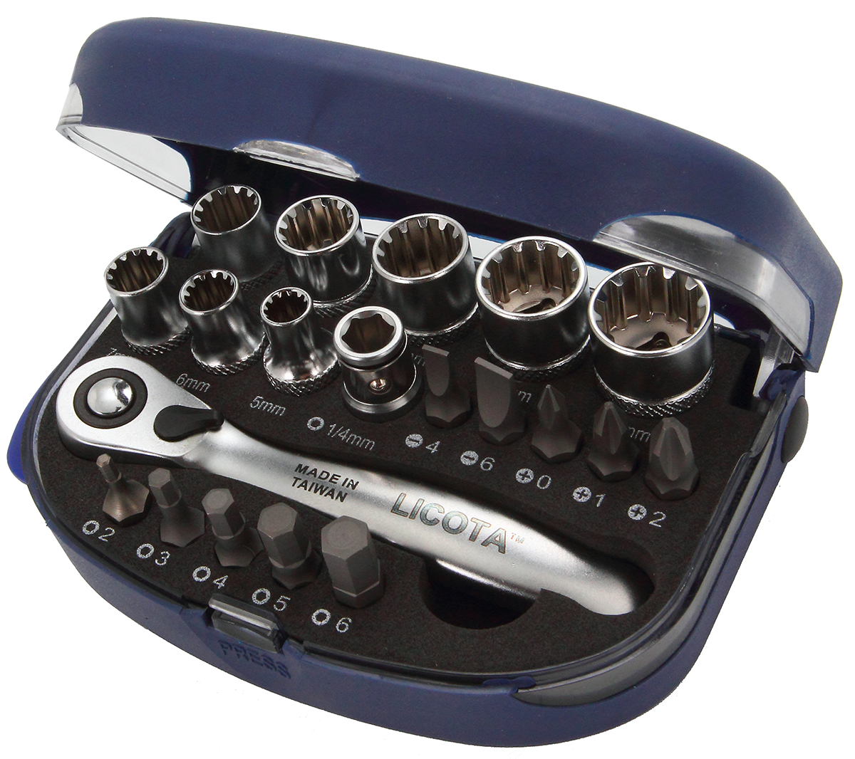 Набор торцевых головок 1/4" с мини трещоткой 20пр.