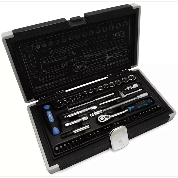 Набор торцевых головок "super lock" с аксессуарами Licota ALK-0002 предназначен для ручного монтажа/демонтажа резьбового крепежа, в том числе и с поврежденными или "слизанными" гранями. Комплект из 50 предметов поставляется в прочном кейсе.