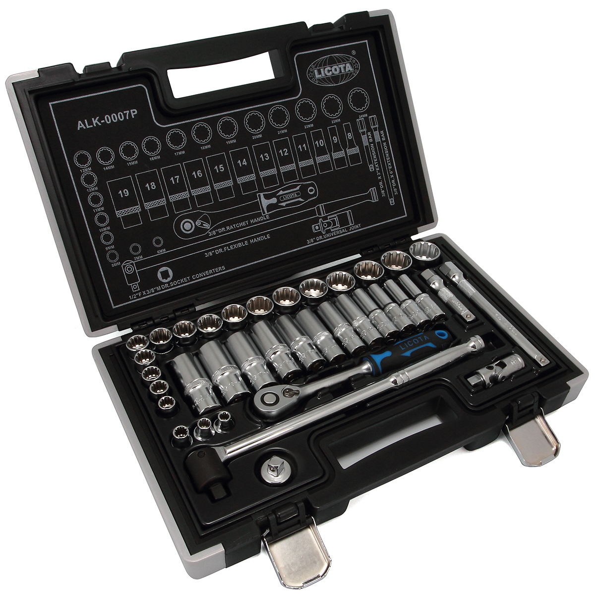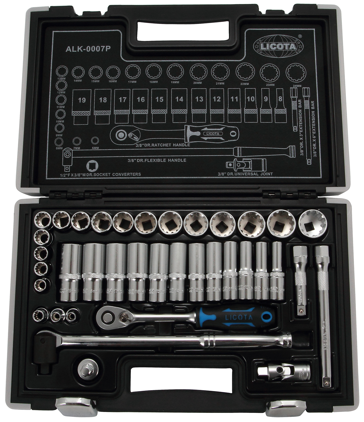 Набор торцевых головок с аксессуарами Licota ALK-0007P предназначен для ручного монтажа/демонтажа резьбового крепежа с рабочим профилем Spline. Размер привода - 3/8".