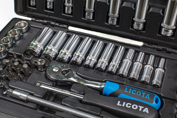 Удлинители и карданы позволяют «подлезть» к труднодоступному крепежу, а трещотка на 72 зуба обеспечивает удобную работу в ограниченном пространстве.
