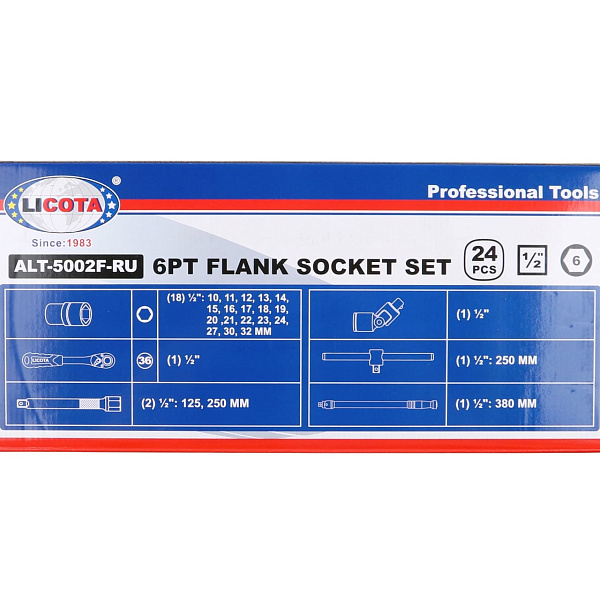 Набор торцевых головок 1/2" 24пр. 10 - 32 мм, Licota, ALT-5002F-RU