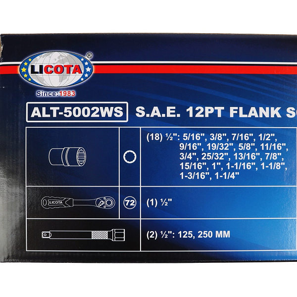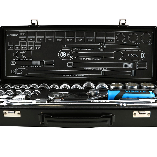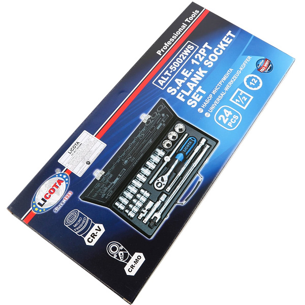 Набор торцевых головок 1/2", 12-ти гранных, 24 пр., 5/16 - 1-1/4", Licota, ALT-5002WS