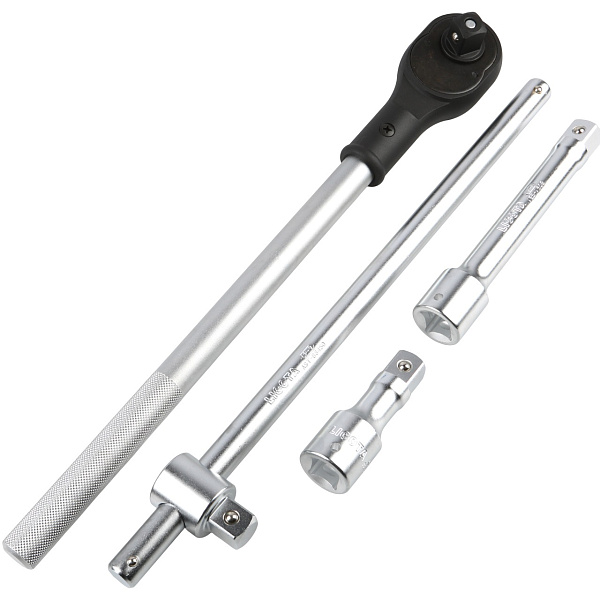 Трещотка на 24 зуба и два удлинителя в комплекте позволяют работать с крепежными элементами, доступ к которым затруднен.