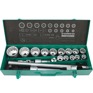 Тип головок - внутренний, с 12 гранями. Размер - от 22 до 50 мм. Размер привода — ¾ дюйма (19,05 мм).