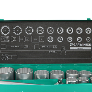 Набор торцевых головок 3/4", 12-ти гранных, 15 пр., 22-50 мм, Licota, ALT-6001W