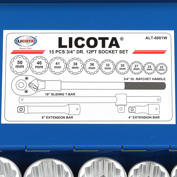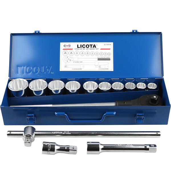 Набор торцевых головок Licota ALT-6001W из хром-ванадиевой стали предназначен для ручного монтажа/демонтажа резьбового крепежа. Набор из 15 предметов в пластиковом кейсе.