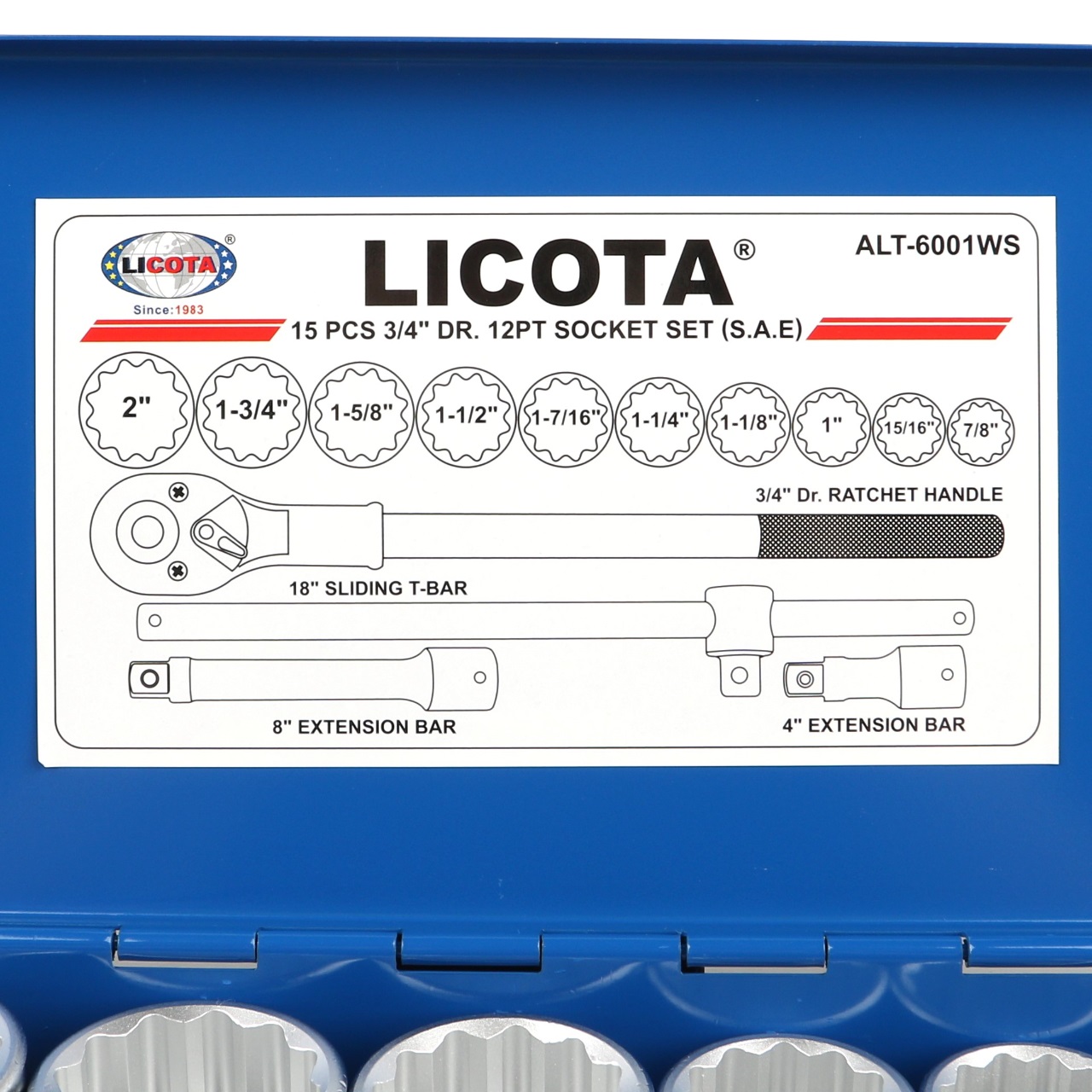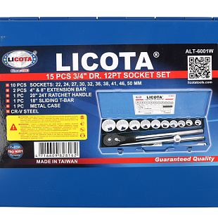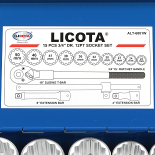Набор торцевых головок Licota ALK-6003F из хром-ванадиевой стали предназначен для ручного монтажа/демонтажа резьбового крепежа с головками дюймовых размеров. Набор из 15 предметов в пластиковом кейсе.