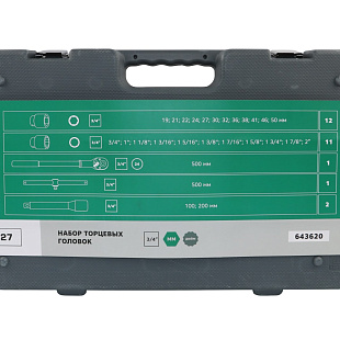 Головка торцевая 6-гранная, 19; 21; 22; 24; 27; 28; 32; 36; 38; 41; 46; 50 мм (12 шт) - 12