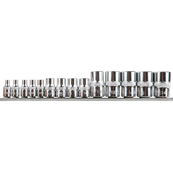 Набор головок Е-профиль Е4-Е24 1/4", 3/8", 1/2" 14пр. на линейке