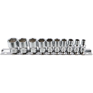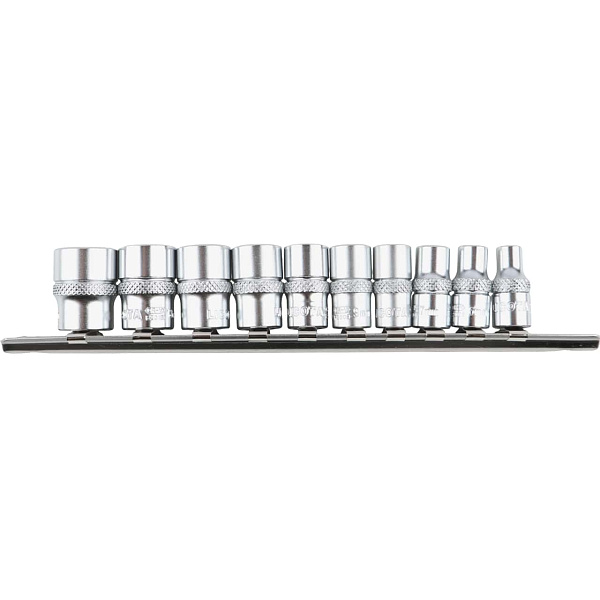 Набор торцевых головок Licota TBS-22001 из хром-ванадиевой стали предназначен для ручного монтажа/демонтажа резьбового крепежа. Набор из 10 предметов на металлическом держателе-линейке.
