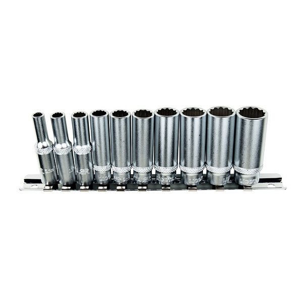 Набор глубоких торцевых головок 1/4" 12-ти гранных, 10 пр. на линейке, 5-14 мм