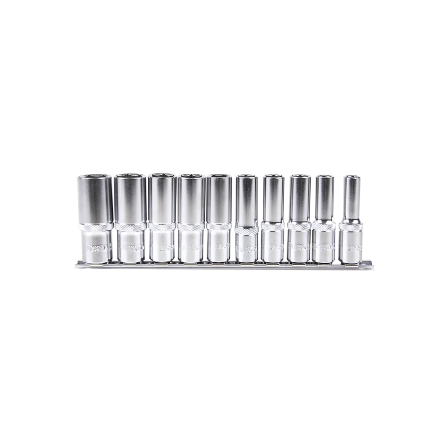 Набор глубоких торцевых головок 1/4" 12-ти гранных, 10 пр. на линейке, 3/16"-9/16"