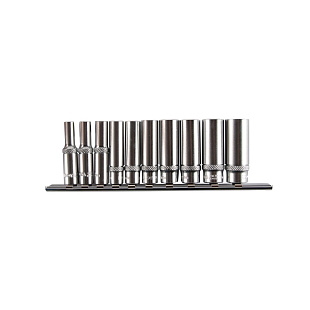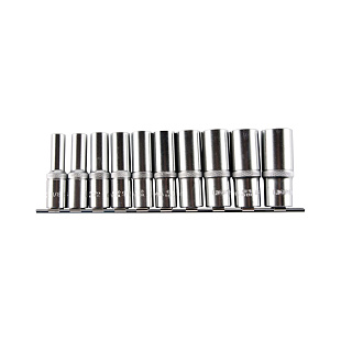 Набор глубоких торцевых головок Licota TBS-23002 из хром-ванадиевой стали предназначен для ручного монтажа/демонтажа резьбового крепежа дюймовых размеров. Набор из 10 предметов на металлическом держателе-линейке.