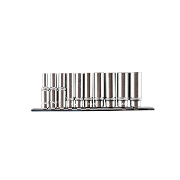 Набор глубоких торцевых головок 3/8" 12-ти гранных, 10 пр. на линейке, 8-22 мм