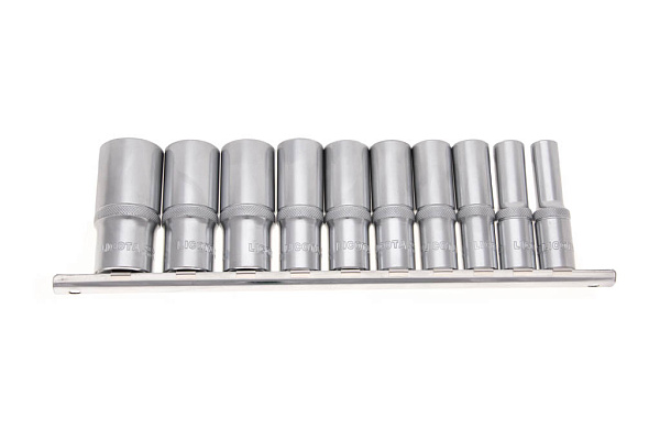 Набор глубоких торцевых головок Licota TBS-23004 из хром-ванадиевой стали предназначен для ручного монтажа/демонтажа резьбового крепежа дюймовых размеров. Набор из 9 предметов на металлическом держателе-линейке.