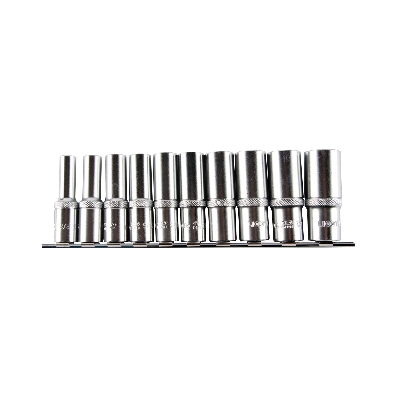 Набор глубоких торцевых головок 1/2" 12-ти гранных, 10 пр. на линейке, 3/8"-15/16"