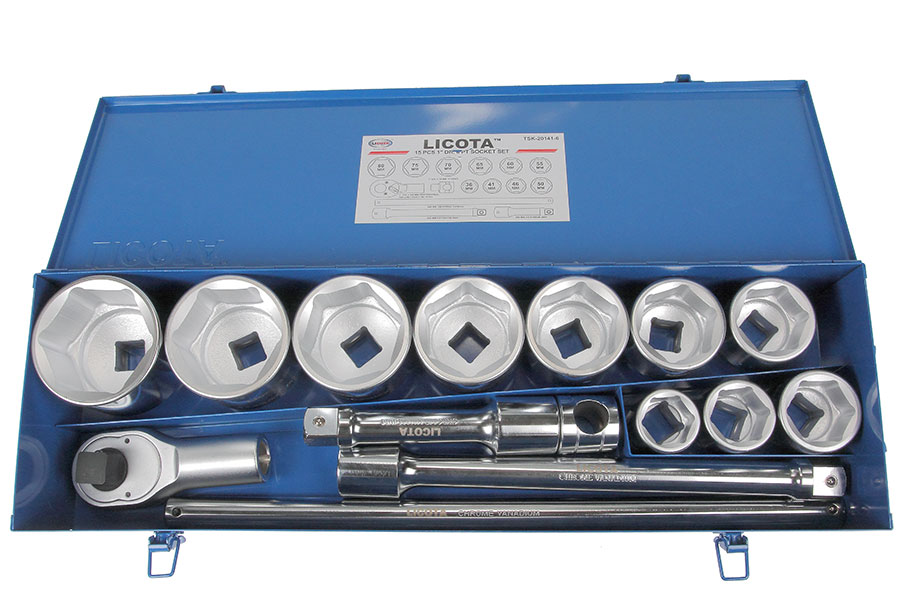 Набор торцевых головок 1", 6-ти гранных, 15 пр., 36-80 мм