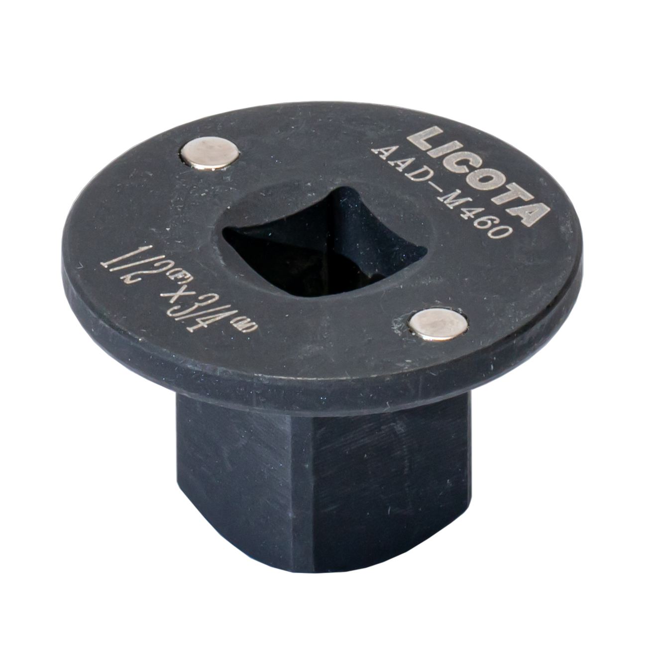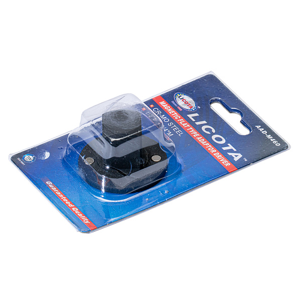 Переходник магнитный плоского типа Licota AAD-M460. Применяется для передачи крутящего момента на торцевые головки. Используется в ситуациях, когда размер привода не соответствует посадочному квадрату нужной головки. Предназначен для работы в ограниченном пространстве, где использование обычного переходника невозможно.