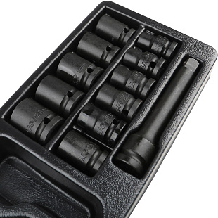 За счет хром-молибденового сплава головки рабочие грани крепежа и приводной квадрат ударного инструмента выдерживают высокие ударные нагрузки.