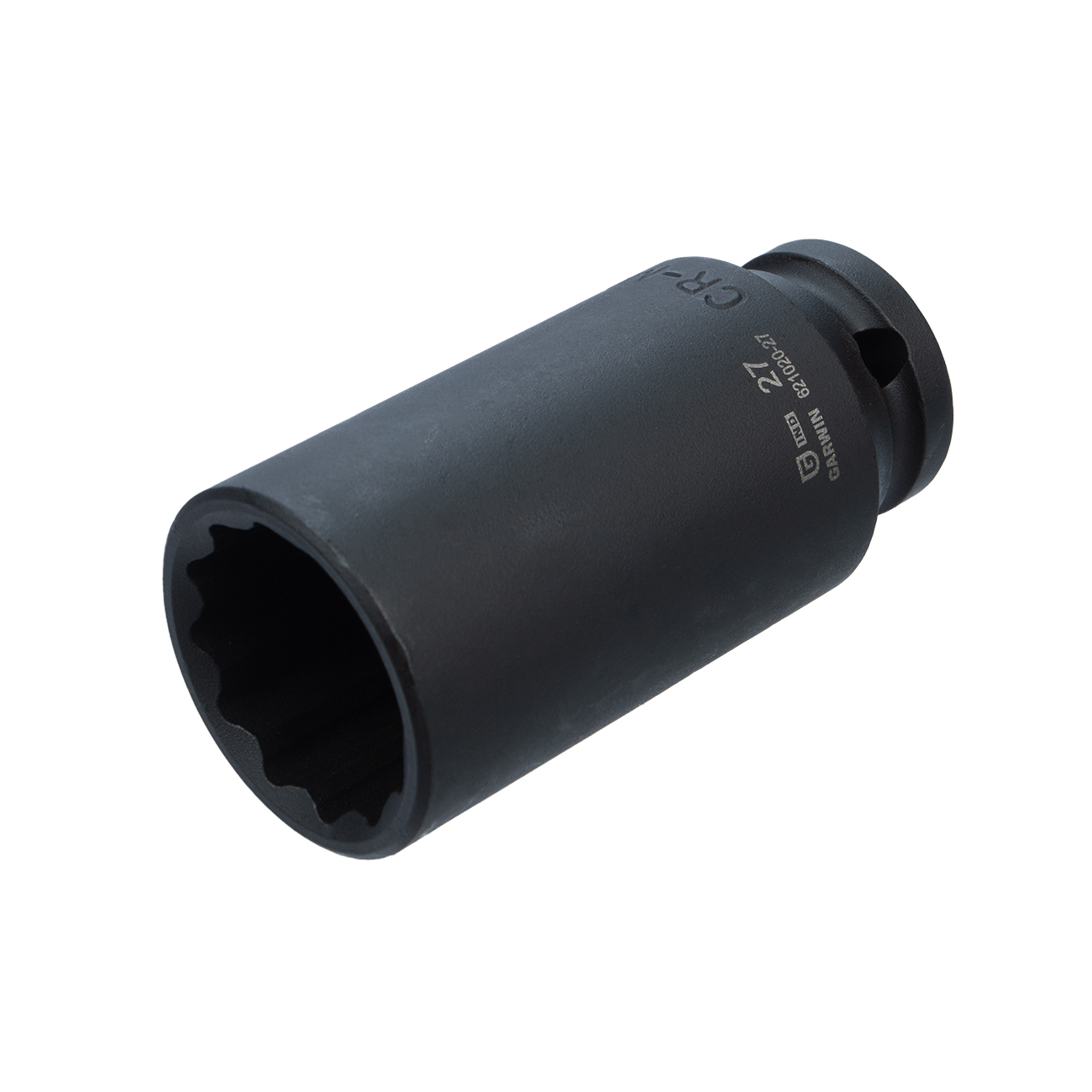 Головка торцевая ударная глубокая Garwin из хром-молибденовой стали с антикоррозийным марганцево фосфатным покрытием, предназначена для монтажа/демонтажа резьбового крепежа там, где длины стандартной головки недостаточно. Чаще всего используется при работе с ударным гайковертом.