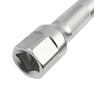 Удлинитель позволяет работать с крепежными элементами, доступ к которым затруднен. Конструкция присоединительного квадрата позволяет передавать момент под углом до 15° к оси вращения крепежа.