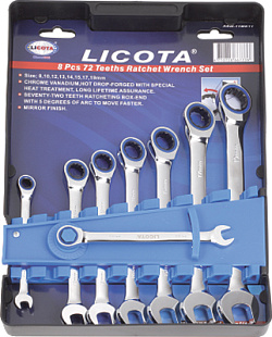 Набор комбинированных трещоточных ключей Licota ARW-11MK06 с рожковым и накидным профилем предназначен для профессиональных автослесарей, автовладельцев, мастерских и СТО. Инструменты используются для монтажа/демонтажа резьбовых элементов.