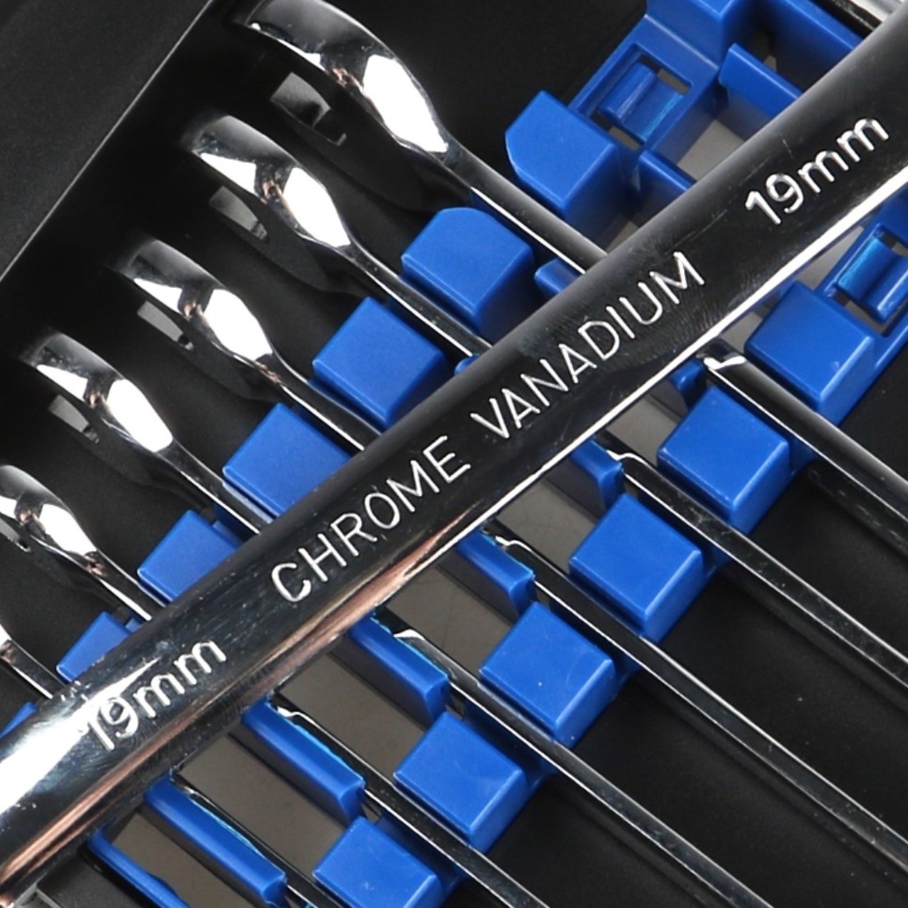 Набор ключей трещоточных комбинированных 72 зуба 8-19 мм, 7 предметов на пластиковом держателе