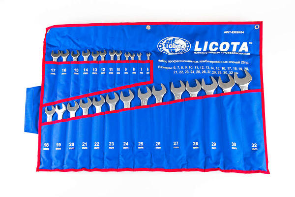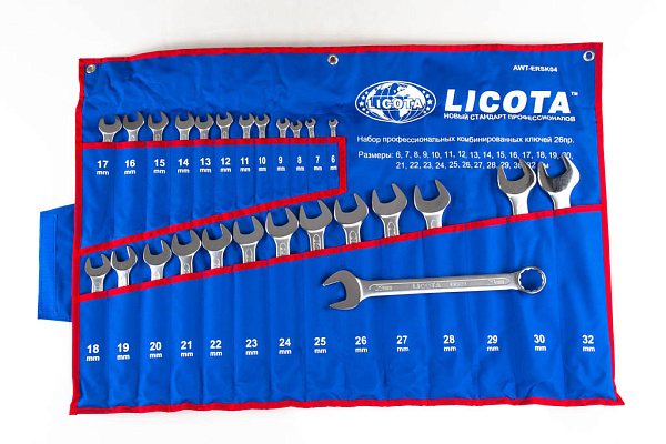 Набор ключей комбинированных 26 предметов 6-32 мм в скрутке, Licota, AWT-ERSK04