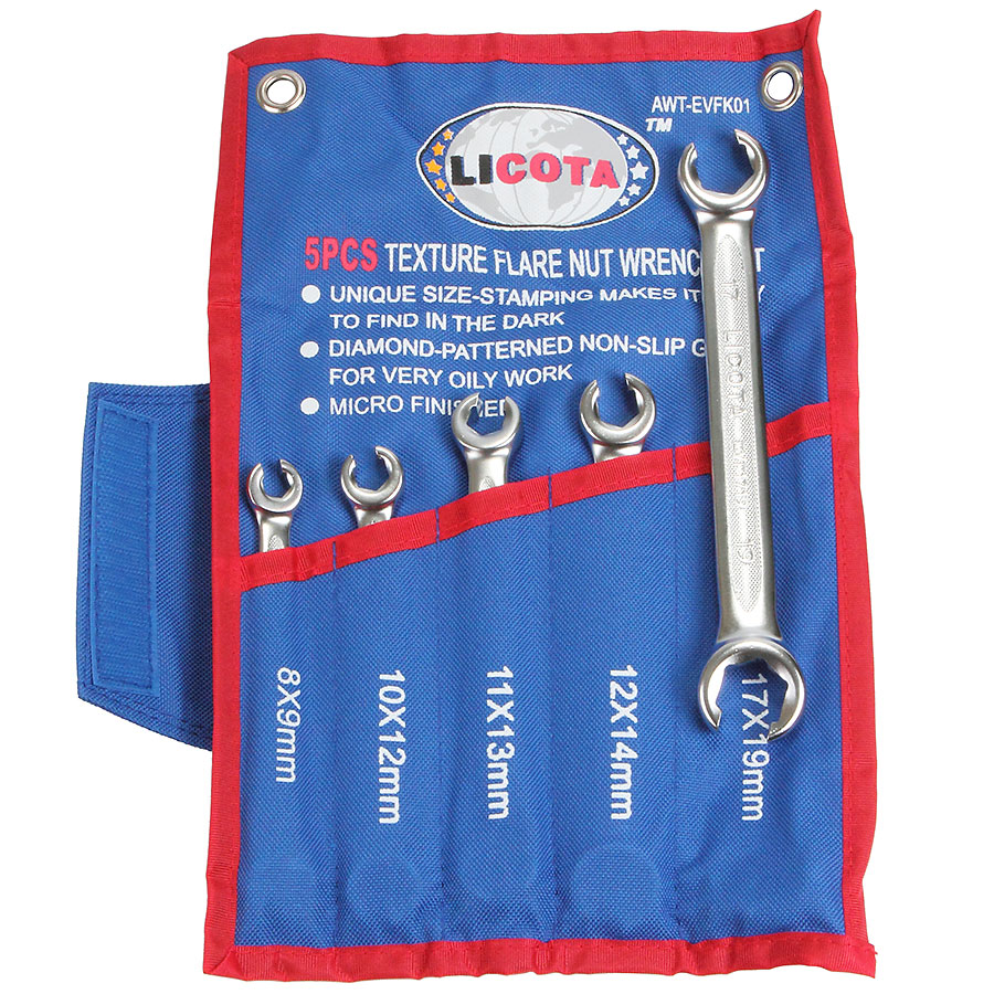Разрезные гаечные ключи Licota AWT-EVFK01 предназначены для работы в быту и профессиональной сфере, например при ремонте автомобилей. Оснащённые двусторонним рабочим профилем в виде разрезанного кольца, инструменты сочетают преимущества накидных и рожковых профилей. Все ключи в наборе изготовлены из хром-ванадиевой стали. Ключи подобного типа также называются «вороньей лапой» из-за характерной формы, и применяются там, где накидные инструменты использовать попросту не выйдет.