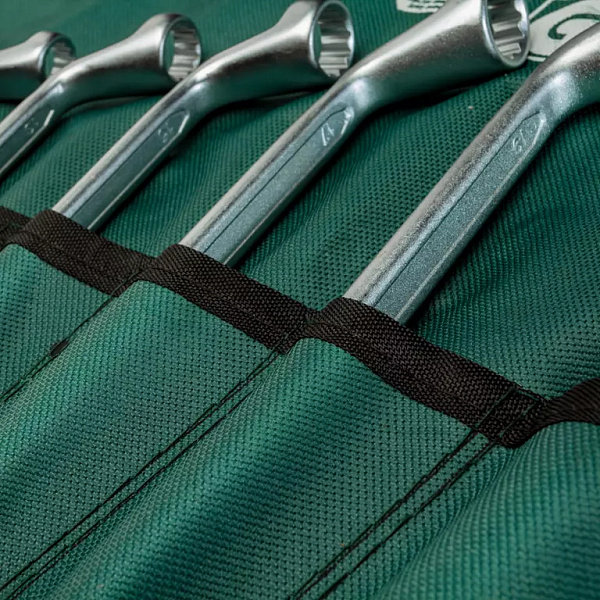 Поставляется в свертке с кармашками, который надежно защищает их от любых загрязнений. Каждый ключ располагается в отдельном кармане чехла с подписанным типоразмером для быстрой идентификации. В скрученном виде набор занимает совсем немного места, вы легко сможете поместить его в багажник, рюкзак или рабочую сумку.