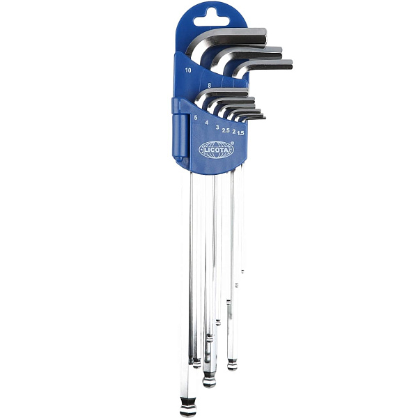 Набор шестигранников угловых экстрадлинных c шаром 9пр. 1,5-10 мм, Licota, 2BP30091DPM