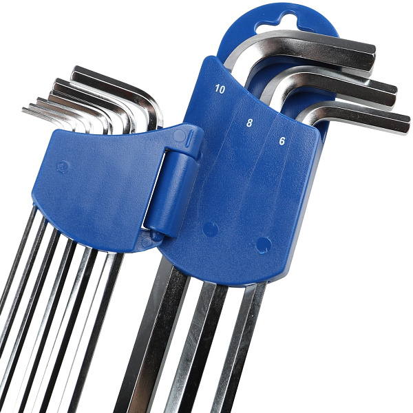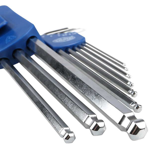 Набор ключей шестигранных угловых (имбусовых) экстра длинных с шаром Licota 2BP30091DPM для работы с крепежом с внутренним профилем Hex. Набор из 9 ключей размерами от 1,5 до 10 мм.