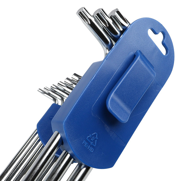 Пластиковый держатель с отверстиями позволяет прикрепить набор к любой рабочей поверхности и предохраняет от потери отдельных ключей.