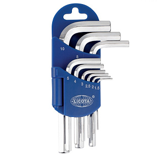 Набор ключей шестигранных складных Licota FX1S071D2CV для работы с крепежом с внутренним профилем Hex. Комплект из 7 ключей размерами от T10 до T40 закреплен на держателе-рукоятке.
