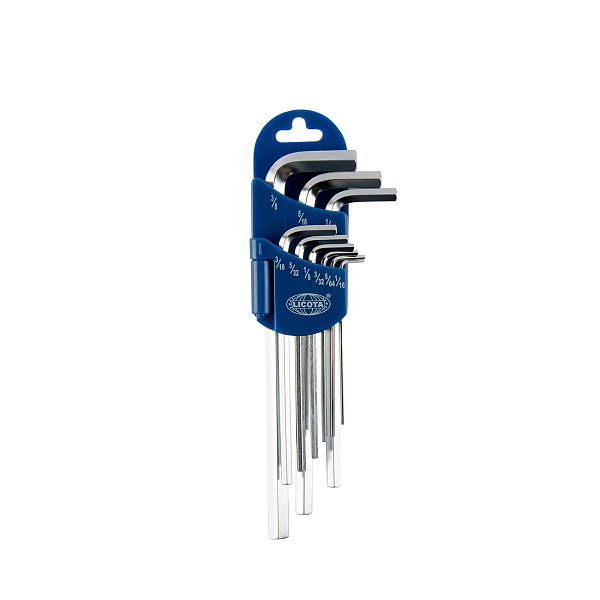 Набор ключей шестигранных угловых (имбусовых) Licota HW2M092H2S2 для работы с “дюймовым” крепежом с внутренним профилем Hex.. Набор из 9 ключей размерами от 1/16 до ⅜ дюйма.