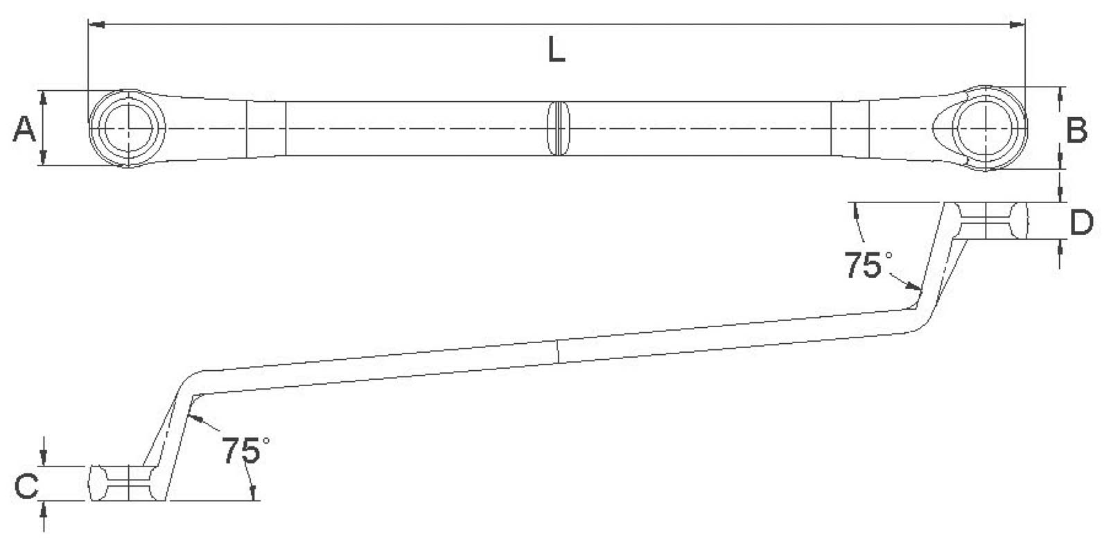 Матовая поверхность обеспечивает надежный хват и препятствует выскальзыванию инструмента из рук. Профиль накидной части из 12 граней подходит к головкам болтов и гайкам как 6-, так и 12-гранного профиля. Изогнутая под углом 75° рабочая часть ключа дает возможность работы с крепежом, расположенным в углублениях.