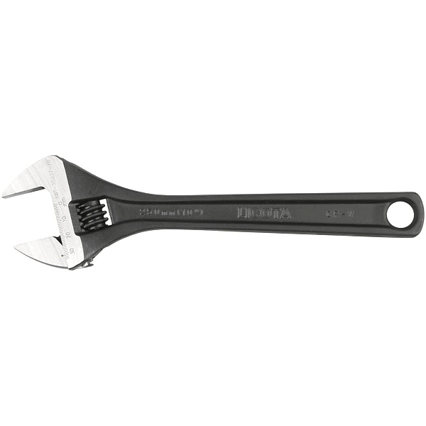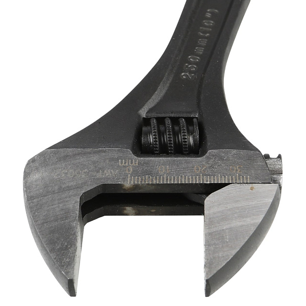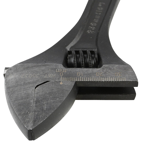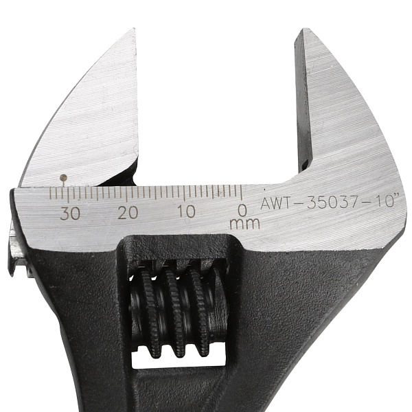 Высокоточная обработка червячного механизма сводит к минимуму люфт зева. На рабочую часть ключа нанесена разметка, позволяющая точно выставить размер зева или, при необходимости, использовать ключ как штангенциркуль. Отверстие на конце рукоятки позволяет подвесить инструмент в удобном месте, чтобы он всегда был под рукой.