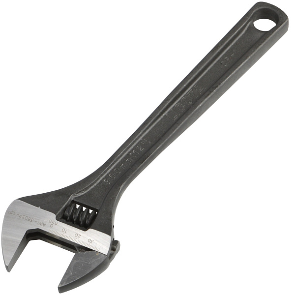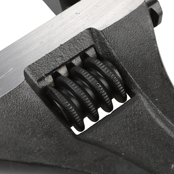 Высокоточная обработка червячного механизма сводит к минимуму люфт зева. На рабочую часть ключа нанесена разметка, позволяющая точно выставить размер зева или, при необходимости, использовать ключ как штангенциркуль. Отверстие на конце рукоятки позволяет подвесить инструмент в удобном месте, чтобы он всегда был под рукой.