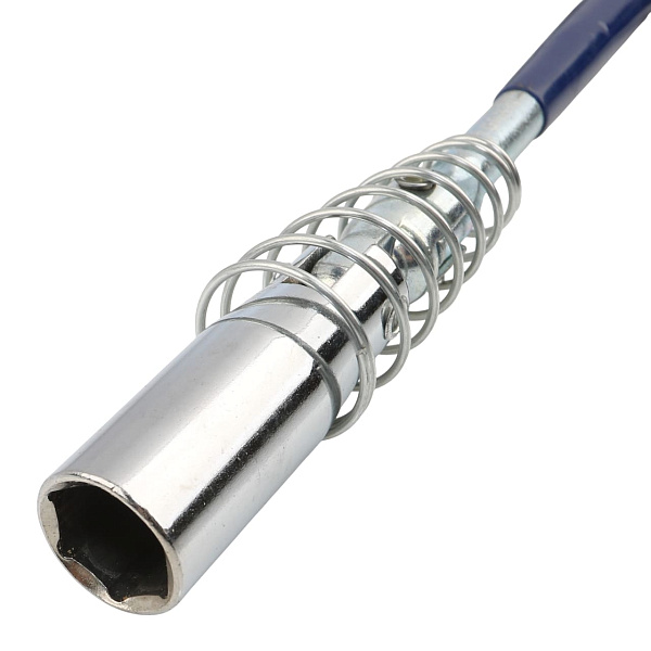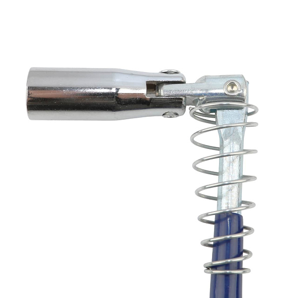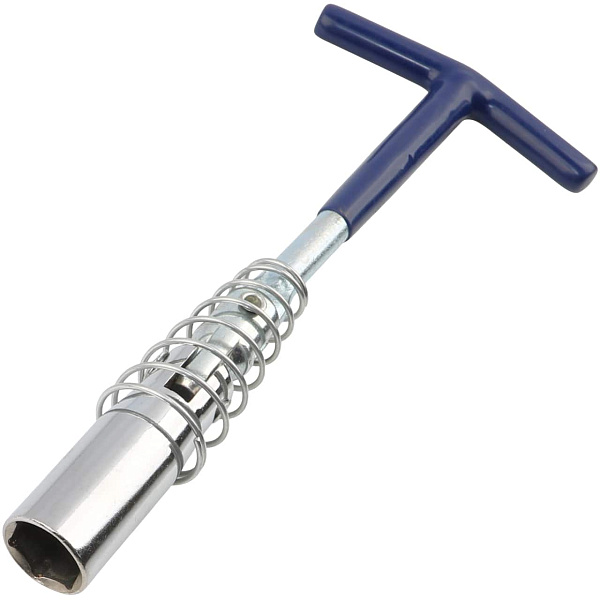 Специализированный инструмент для установки и извлечения свечей зажигания в двигателях внутреннего сгорания. Шарнирный механизм обеспечивает гибкость при работе в труднодоступных зонах подкапотного пространства. Резиновый держатель надежно фиксирует свечу во время монтажа, предотвращая падение и повреждение.