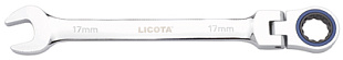 Трещотка с храповым механизмом на 72 зуба обеспечивает малый угол перестановки ключа - 5°. Трещоточная часть крепится к рукоятке гибким шарниром, что значительно облегчает монтаж резьбовых соединений в ограниченном пространстве, где угол поворота ключа ограничен. Профиль трещотки из 12 граней подходит к головкам болтов и гайкам как 6-, так и 12-гранного профиля. Матовая поверхность обеспечивает надежный хват и препятствует выскальзыванию инструмента из рук.