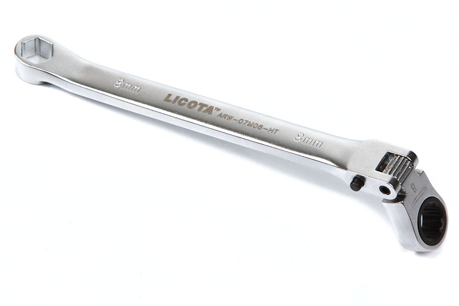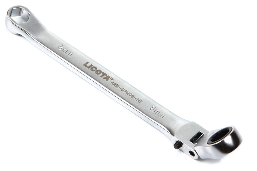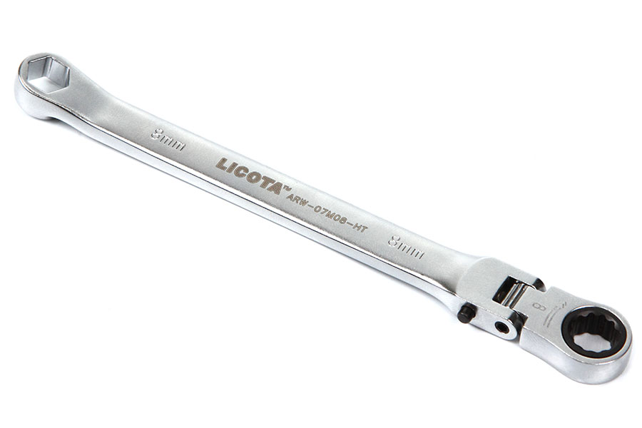 Ключ комбинированный трещоточный гибкий с фиксацией Licota ARW-07M08 предназначен для монтажа-демонтажа резьбовых соединений при обслуживании автомобилей и другой техники в домашних и автослесарных мастерских, на производствах или СТО.
